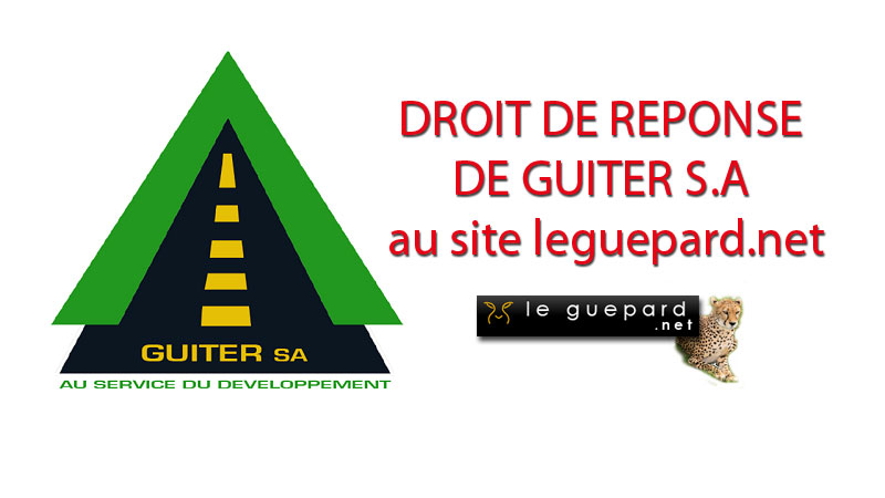 Notre redaction s'est procurée d'une copie du dit droit de reponse de la direction de GUITER SA (Guinéenne du terrassement) adressé au site leguepard.net afin de léver tout soupçon et éclaircir leur position face aux déclarations qui l'impliquent dans cet article http://leguepard.net/2018/06/25/les-mines-de-boke-corruptions-conflits-dinteret-societes-ecrans-actionnariats-dissimules-pillages-acceleres-a-lechelle-industrielle-y-compris-par-le-sommet-de-letat-gui/.